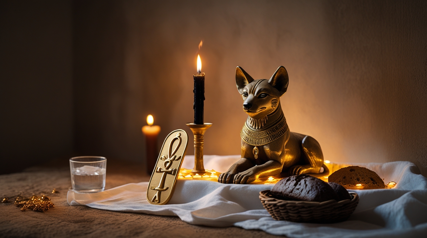 Постоянный алтарь Анубиса в доме — это не просто декор. Это точка постоянного присутствия бога, якорь его защиты в твоём пространстве.