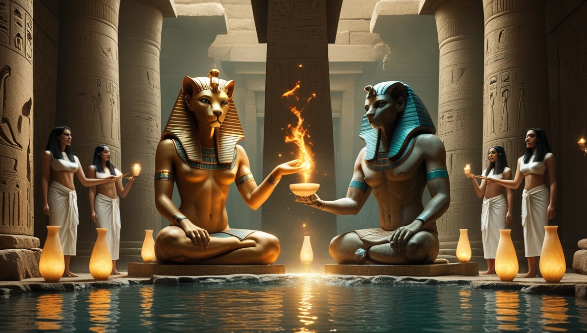 Союз Птаха и Сехмет — один из самых глубоких и многозначных символов египетской мифологии, который продолжает говорить с нами через тысячелетия. Он напоминает: настоящее творение невозможно без готовности к разрушению, настоящая сила невозможна без мудрости, а исцеление нередко начинается с огня.