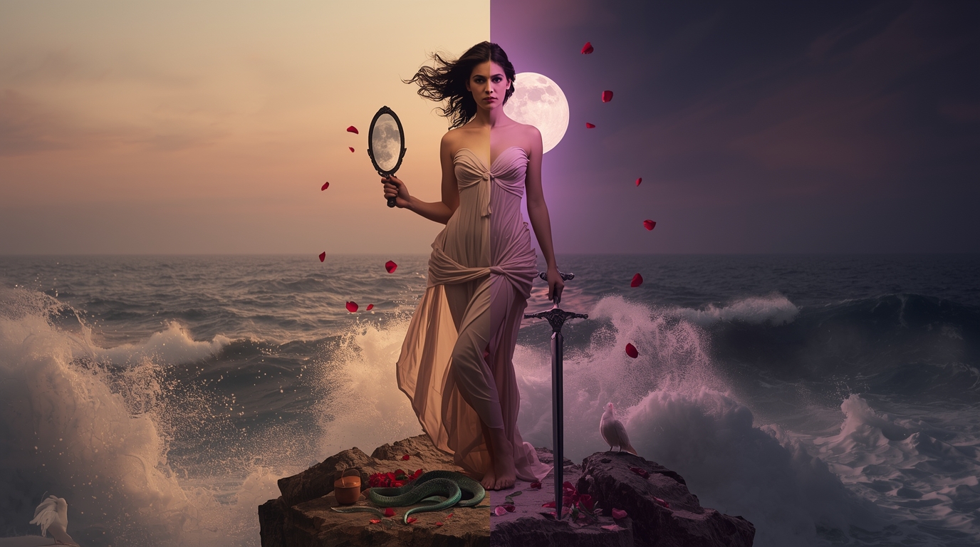 Эта «тёмная» сторона богини несёт важное послание: любовь — не только нежность и сладость. Она включает ревность, боль, потерю, трансформацию. Афродита учит принимать полный спектр любви — не только радость встречи, но и боль разлуки, не только восторг влюблённости, но и зрелую работу над отношениями.