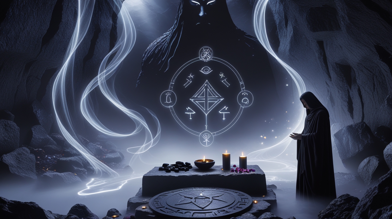 Ответ: Специальный стационарный алтарь не обязателен. Достаточно тёмного пространства, чёрной поверхности (ткань, поднос), чёрной свечи и нескольких символических объектов — камня, чаши, благовония. Важнее намерение и состояние, чем физическое убранство. Если вы практикуете регулярно и хотите создать постоянный алтарь, расположите его в северной части помещения, близко к земле (на низком столике или на полу), используйте чёрный или тёмно-синий текстиль, тёмные камни и минимум предметов — лаконичность соответствует природе Эреба.