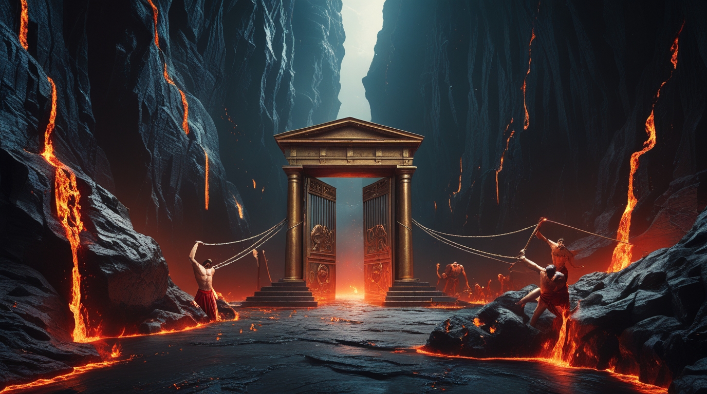 Медные врата и железный порог. Гомер описывает Тартар как огороженное место с железными воротами. Это символ непреодолимости и окончательности. Тот, кто попал за эти ворота, не выйдет — если только сам Зевс не решит иначе.