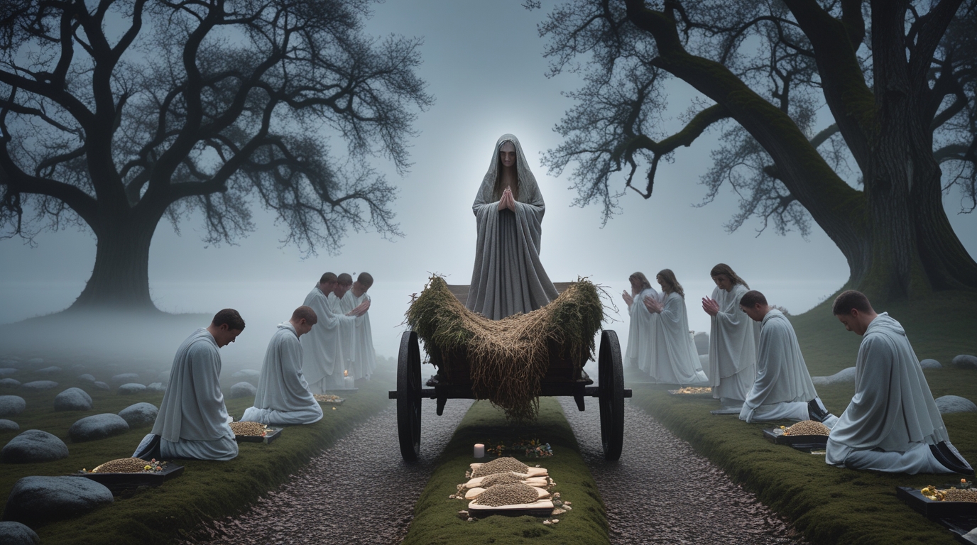 Скандинавская богиня земли Нертус управляла не просто ростом злаков — она управляла самой почвой, её составом, влажностью, способностью принимать семена. Её призывали, чтобы земля была мягкой и тёплой, чтобы дожди шли вовремя, а заморозки не губили ростки.