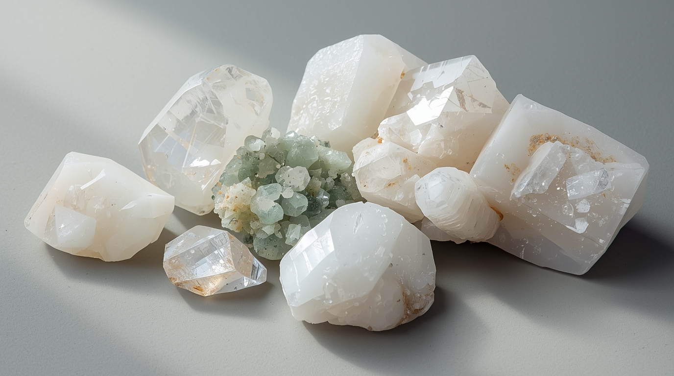 Ответ: Оба — прозрачные кристаллы высоких вибраций, но между ними есть существенные различия. Горный хрусталь (прозрачный кварц, SiO₂) значительно твёрже (7 по Моосу), устойчив к воде и свету, является универсальным «усилителем» любых намерений. Апофиллит мягче (4,5–5), содержит воду в составе, имеет характерный перламутровый блеск и специализируется на связи с высшими планами сознания. Горный хрусталь — более универсальный камень, апофиллит — более специализированный инструмент для духовных практик.